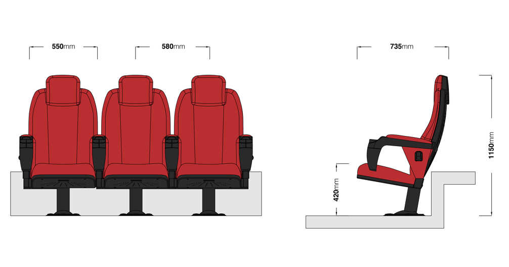 - Seating and backrest units of the seats are 50+-10% density polyurethane filling sponge on metal frame.